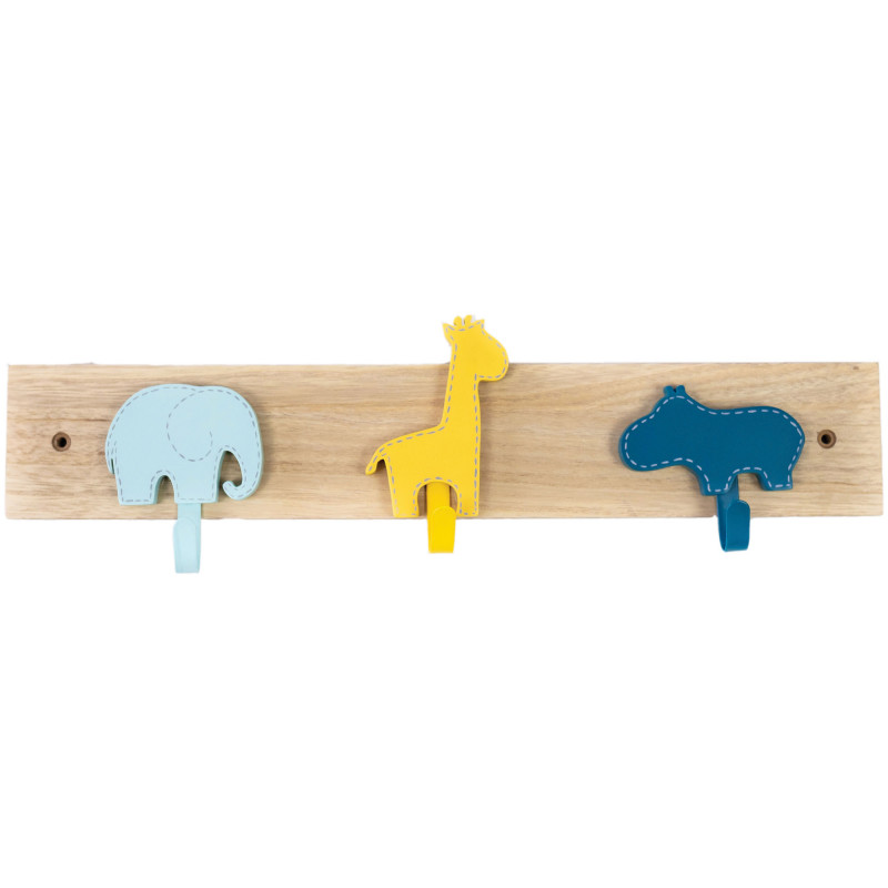 Pratique et déco, le portemanteau Za Ni Mo est conçu en MDF avec des 3 patères animaux, avec crochets en métal. Fixation simple au mur par 2 vis (fournies) Découvrez toute la collection ZA NI MO, quand Zaza la girafe rencontre Nini l'hippo et Mo l'éléphant dans l'univers merveilleux de la jungle. Dimension : 40x7 cm